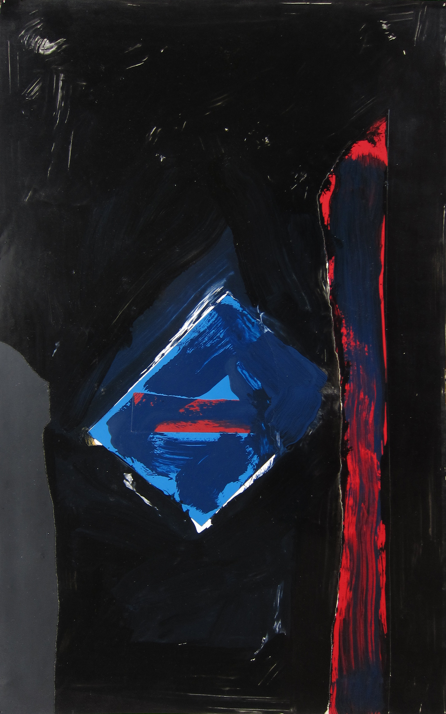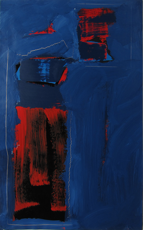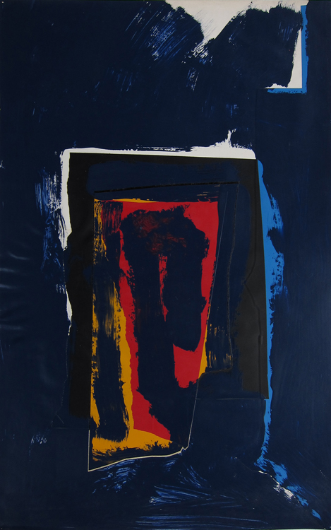These mixed media pieces are on paper and were made around 1990. A suite of 18 developed as a visual response to my Vancouver environment. At the time I was living in Kitsilano about 5 blocks from the ocean. It was an almost daily routine for me to walk, run or cycle somewhere along the beach area. Assembled from sign shop scraps of vinyl, industrial paints and acrylic paint. I used place them in some inexpensive plexi box frames in a grouping of 6 (2 x 3). Now and then, I would rotate them for variety.