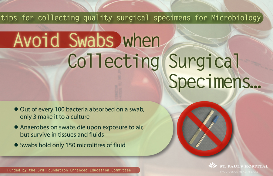 graphic artThese posters were created in 2007 for the Microbiology Department at St. Paul’s Hospital to remind medical staff of effective methods for collecting samples. With minimal direction photographer, Brian K. Smith, shot the petri dishes in the microbiology lab which formed an interesting and colourful backdrop for the text.